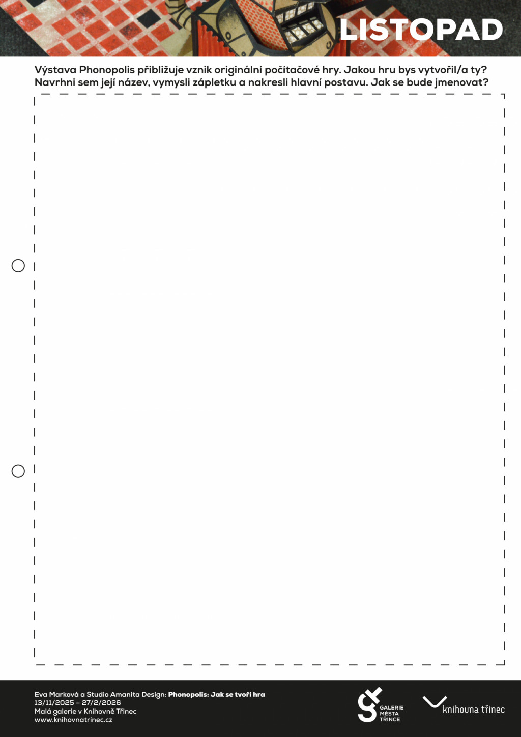 Každý měsíc zveřejníme dvě tvořivé výzvy vázané na naše výstavy v Galerii města Třince a Malé galerii Knihovny Třinec. Budou vás inspirovat ke tvoření, přinášet nové nápady a témata a provázet vás celým rokem.