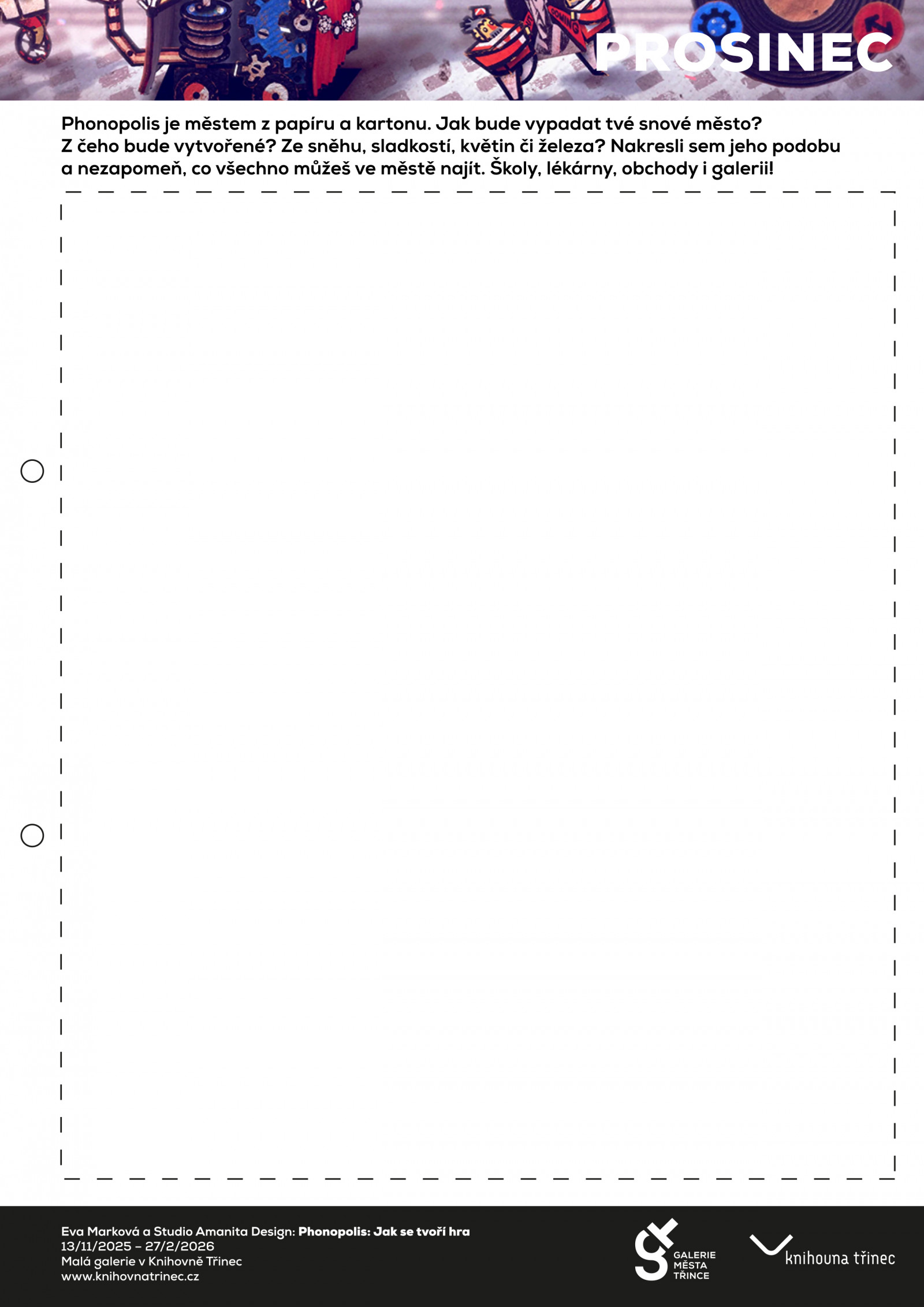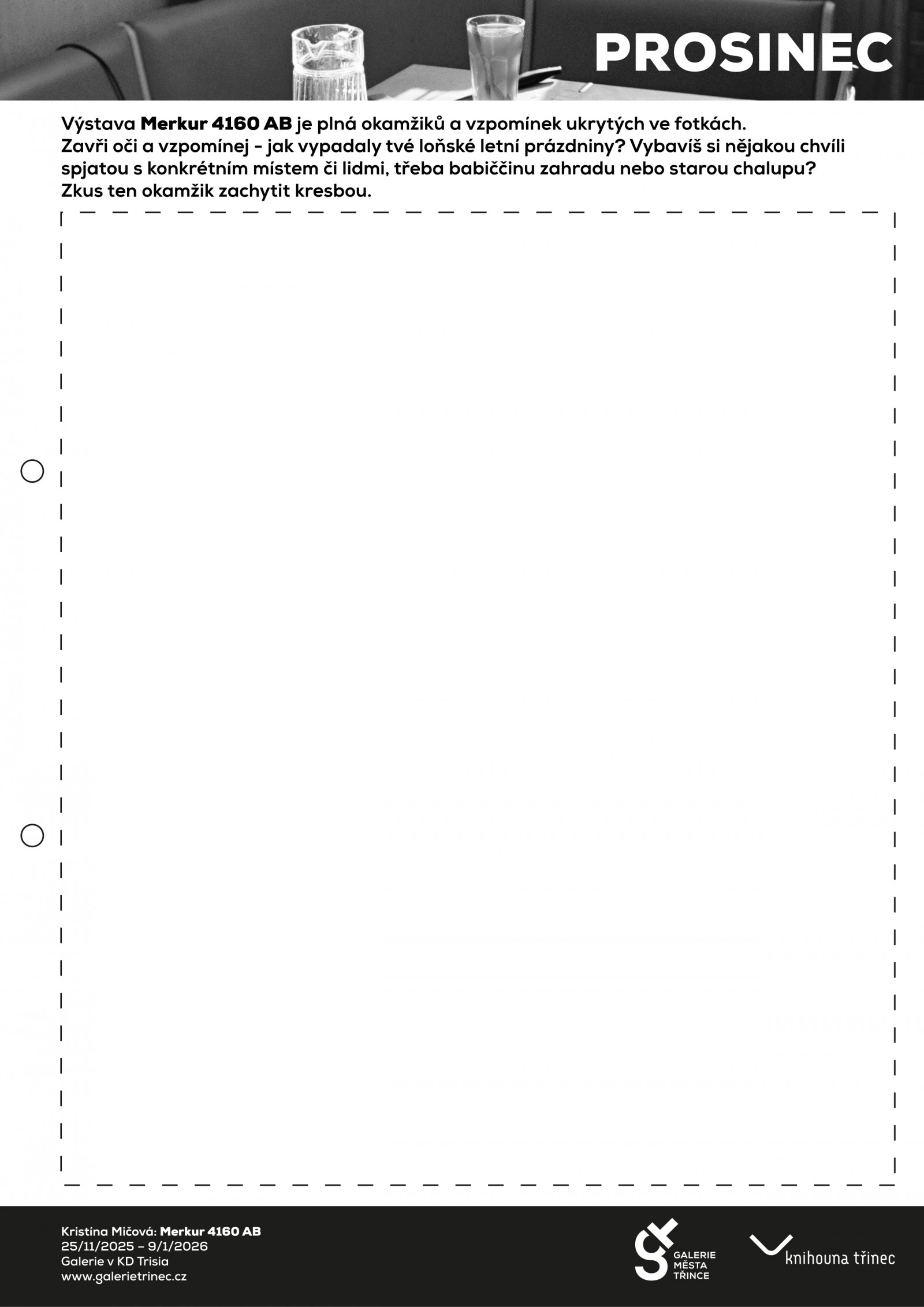 Každý měsíc zveřejníme dvě tvořivé výzvy vázané na naše výstavy v Galerii města Třince a Malé galerii Knihovny Třinec. Budou vás inspirovat ke tvoření, přinášet nové nápady a témata a provázet vás celým rokem.