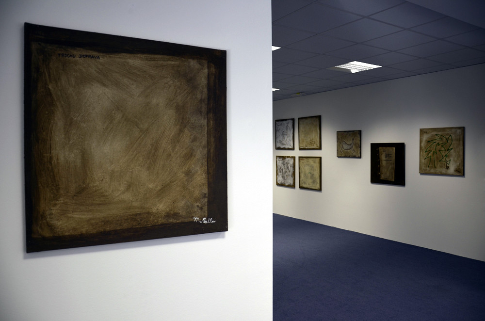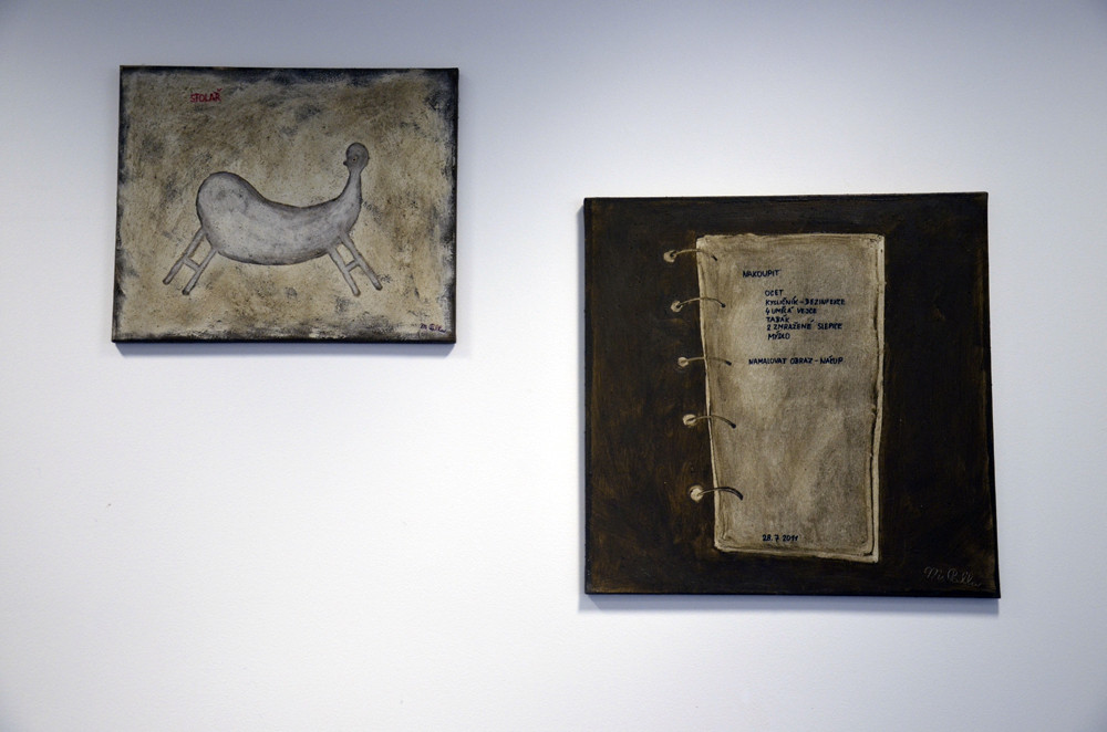 Výstava hlínových obrazů Mariana Pally a komixů Venduly Chalánkové.