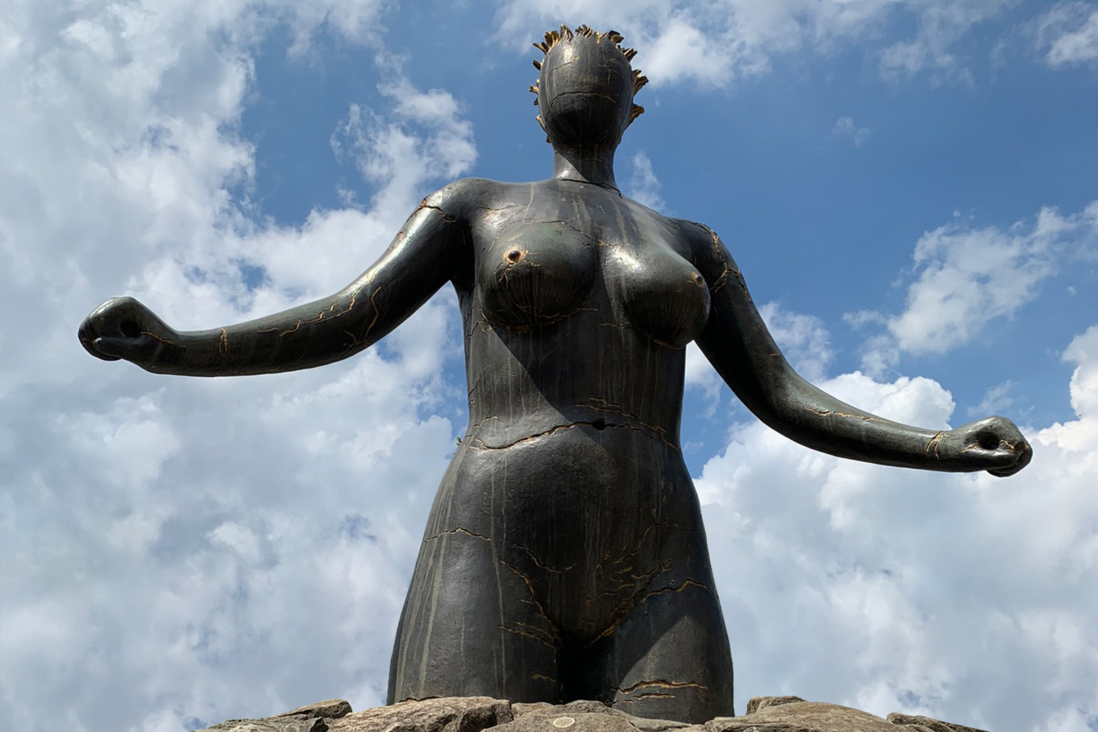 Socha zobrazuje stylizovanou ženskou postavu — „bohyni“ — která v sobě nese jak prvky mateřství a plodnosti (voda, „radost ze života“), tak pevnost a suverenitu horského prostředí. V regionálním kontextu Beskyd nabývá postava dvojí funkce: připomíná vztah místních k horské krajině (horské prameny, lesy, práce s kamenem) a zároveň zprostředkovává univerzální symboliku přírodních živlů jako zdroje obživy a identity. Dílo tedy nefunguje jen esteticky, ale i jako kulturní meta-znak propojení obyvatel města s krajinou za jeho hranicemi. (Interpretace stavěná na formálních prvcích díla a kontextu soutěžního zadání.).