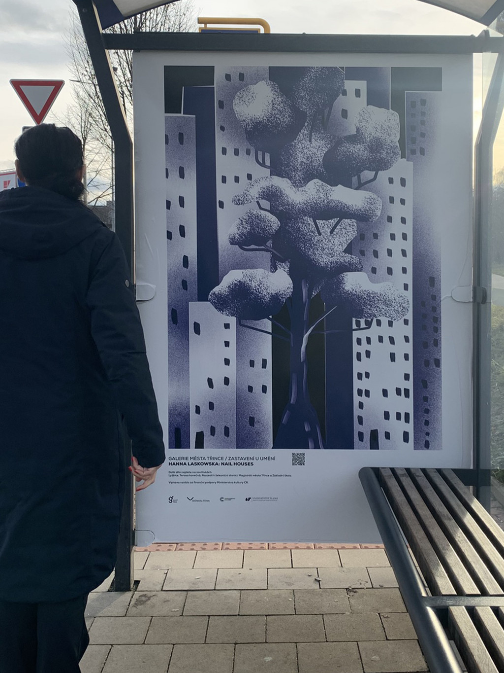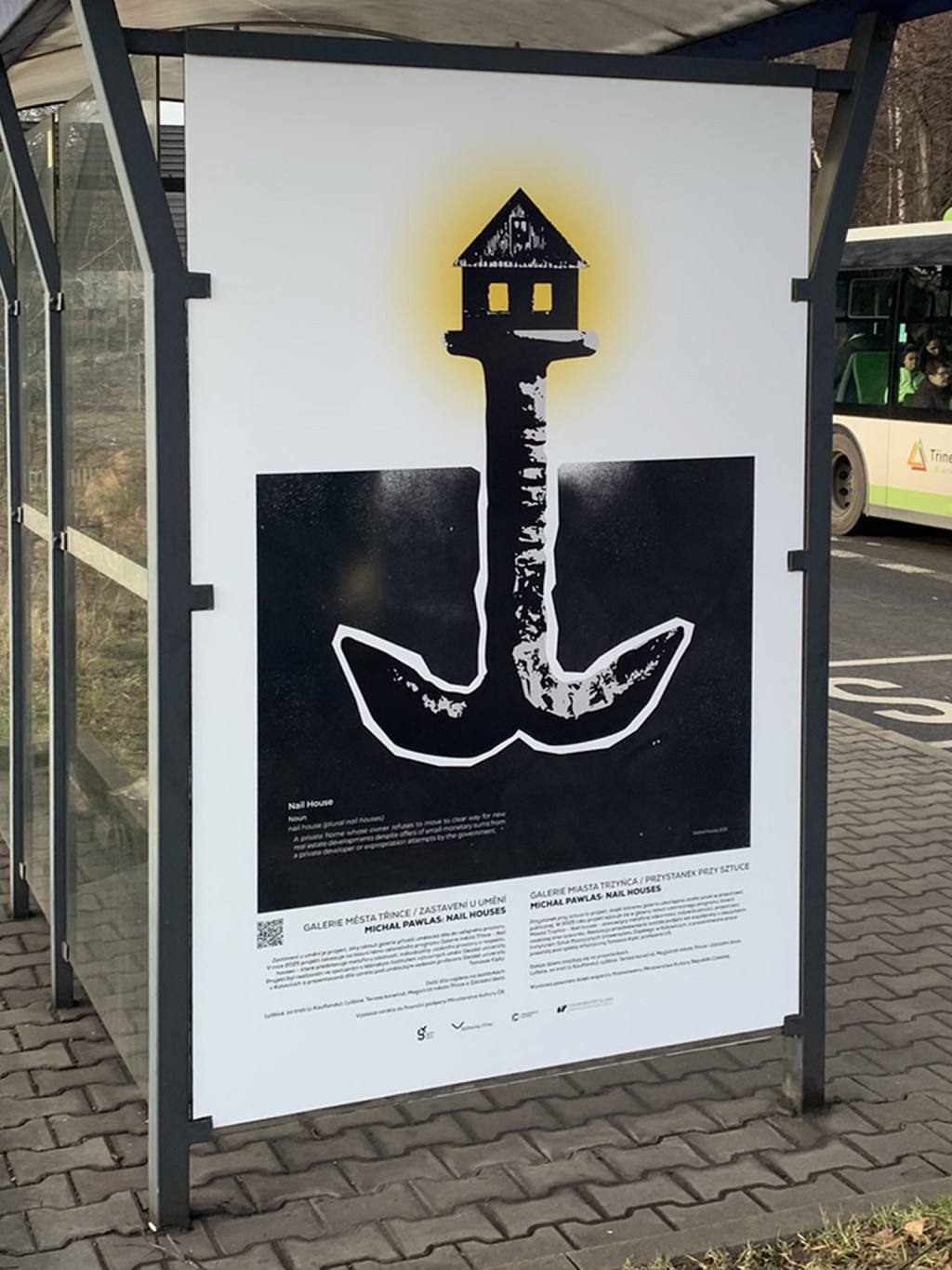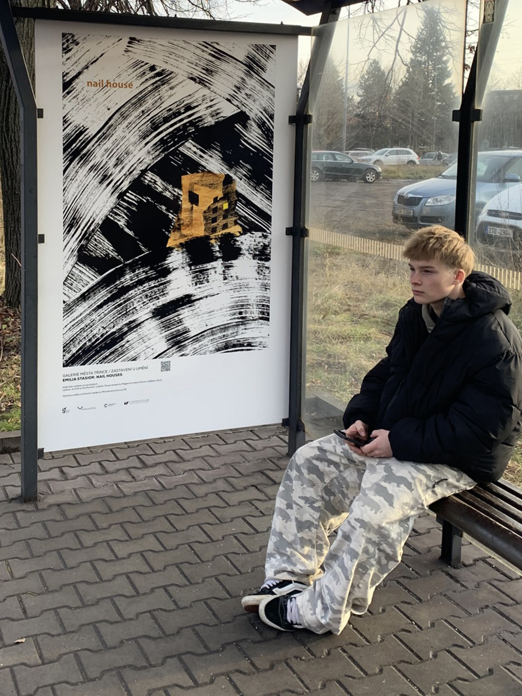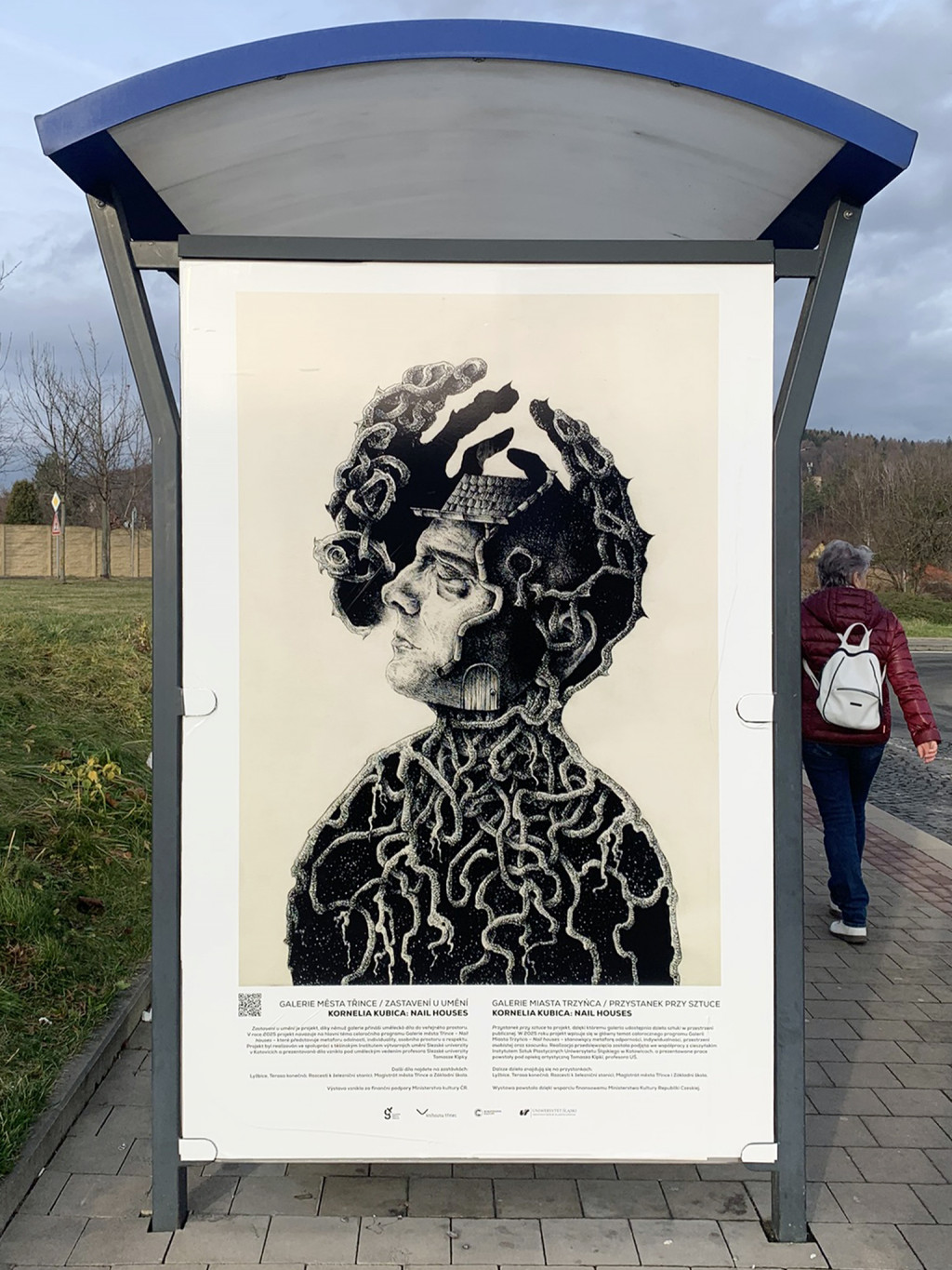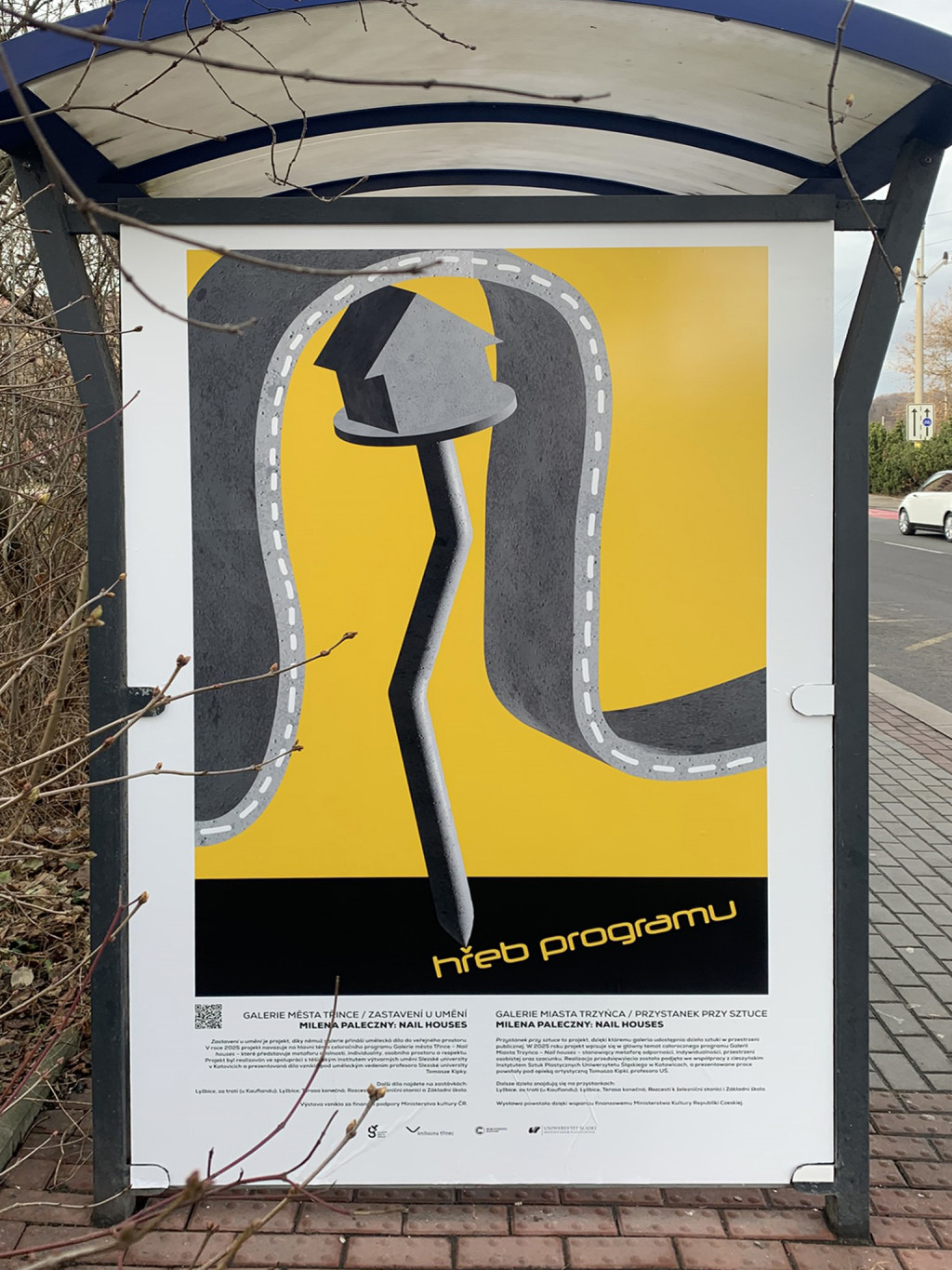 Przystanek przy sztuce to projekt, dzięki któremu galeria udostępnia dzieła sztuki w przestrzeni publicznej. W 2025 roku projekt wpisuje się w główny temat całorocznego programu Galerii Miasta Trzyńca - Nail houses - stanowiący metaforę odporności, indywidualności, przestrzeni osobistej oraz szacunku. Realizacja przedsięwzięcia zostala podjęta we współpracy z cieszyńskim lnstytutem Sztuk Plastycznych Uniwersytetu Śląskiego w Katowicach, a prezentowane prace powstały pod opieką artystyczną Tomasza Kipki, profesora UŚ.